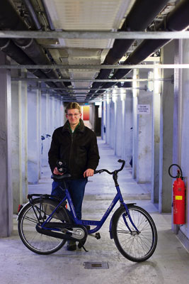 “Normaal ga ik met de scooter of met de racefiets”, verklaart van der Baan zijn tijdelijke vervoermiddel, die we geparkeerd aantreffen in de kelder van het TNW-gebouw. “Door de kou startte mijn scooter niet, en ik heb deze week al twee dagen gefietst, dat vond ik wel mooi zo.” Van der Baan is carpoolend uit Ridderkerk gekomen. “Bij het Reactor Instituut leen ik dan een fiets, dat werkt prima.” Aan de fiets zal het inderdaad niet liggen, want alles daaraan werkt. “Alleen vergeleken met mijn racefiets is het wel een verschil.”