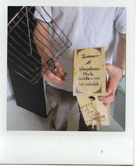 Bij terugkomst in de keuken rende er alweer een andere muis richting het fornuis. Tim pakte zijn barbecuerekje en begon er woedend mee te zwaaien. Het wordt nog eens zijn fulltime job. (MvdS)