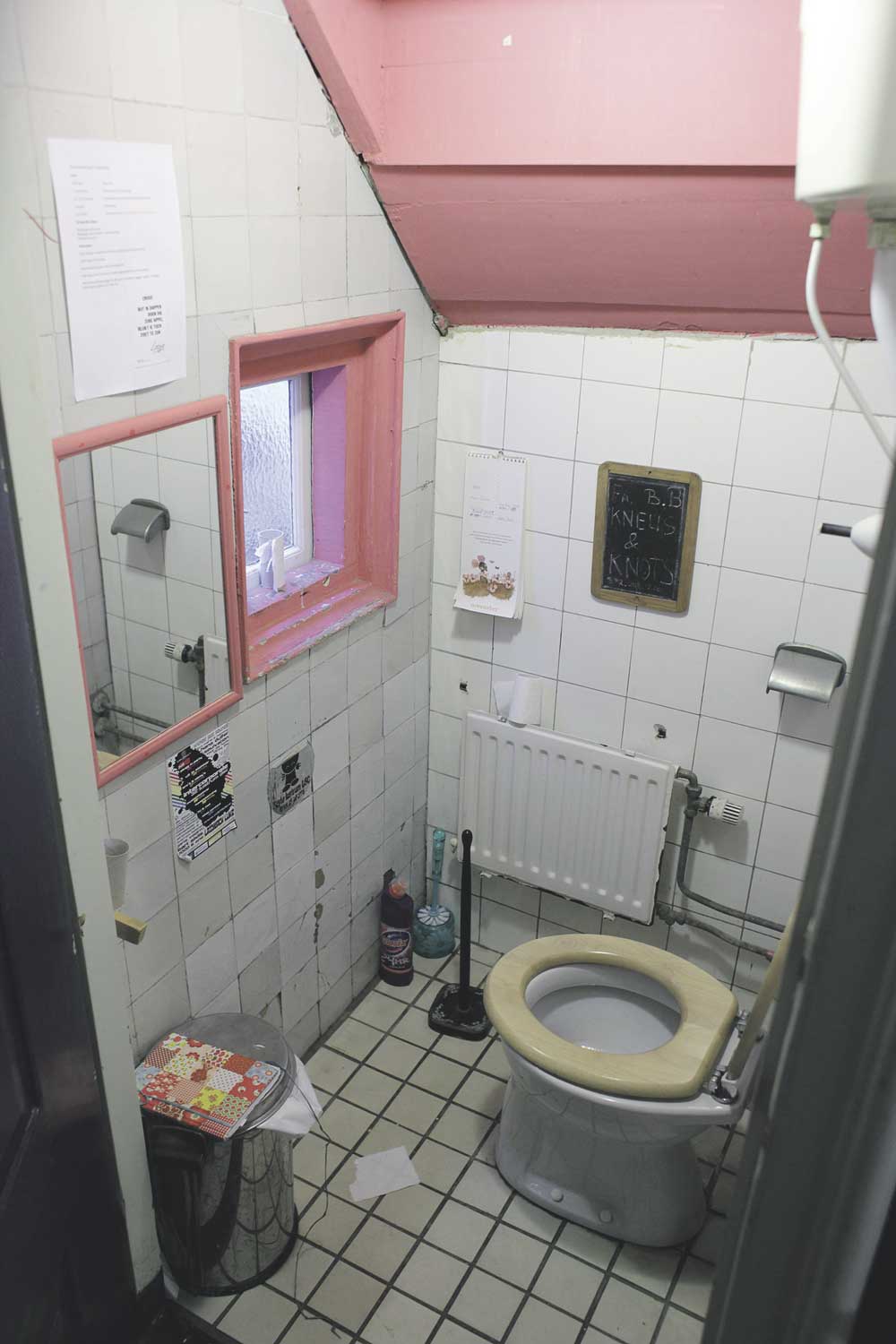 De twaalf bewoonsters van Oude Delft 26 beschikken over drie toiletten, op iedere verdieping één. De toiletbril van de wc op de begane grond is geschonken door bewoners van Oude Delft 223.