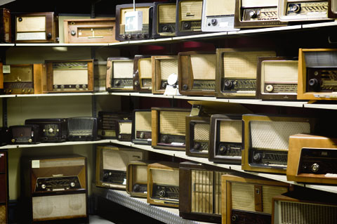 Eerst een stalen deur die alleen op maandagen en op afspraak open gaat. Dan flikkeren de tl-buizen aan en je ziet radio’s, honderden radio’s. Op planken zijn ze vijf hoog gerangschikt: de oudste helemaal links en rechts de buizenradio’s uit de jaren vijftig en zestig met het kattenoog en de afstemschaal met namen als Frankfurt, Dublin en Beromünster. Om de hoek gaat het verder. Daar staat een grote houten vergadertafel middenin de zaal. Warm licht straalt uit de glazen hanglampen. Tegen de wanden staan houten boekenkasten zij aan zij met stofbeklede boeken achter glazen deuren. Je waant je hier in een klap vijftig jaar terug in de tijd.