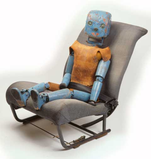 Zo kunnen bezoekers van de tentoonstelling ‘Topmodellen in onderzoek en onderwijs’ Pinokkio bewonderen, de eerste kinderbotsdummie ooit. TNO ontwikkelde deze inmiddels wat gehavende pop in 1975 om de gevolgen van een autobotsing op kinderen te onderzoeken.