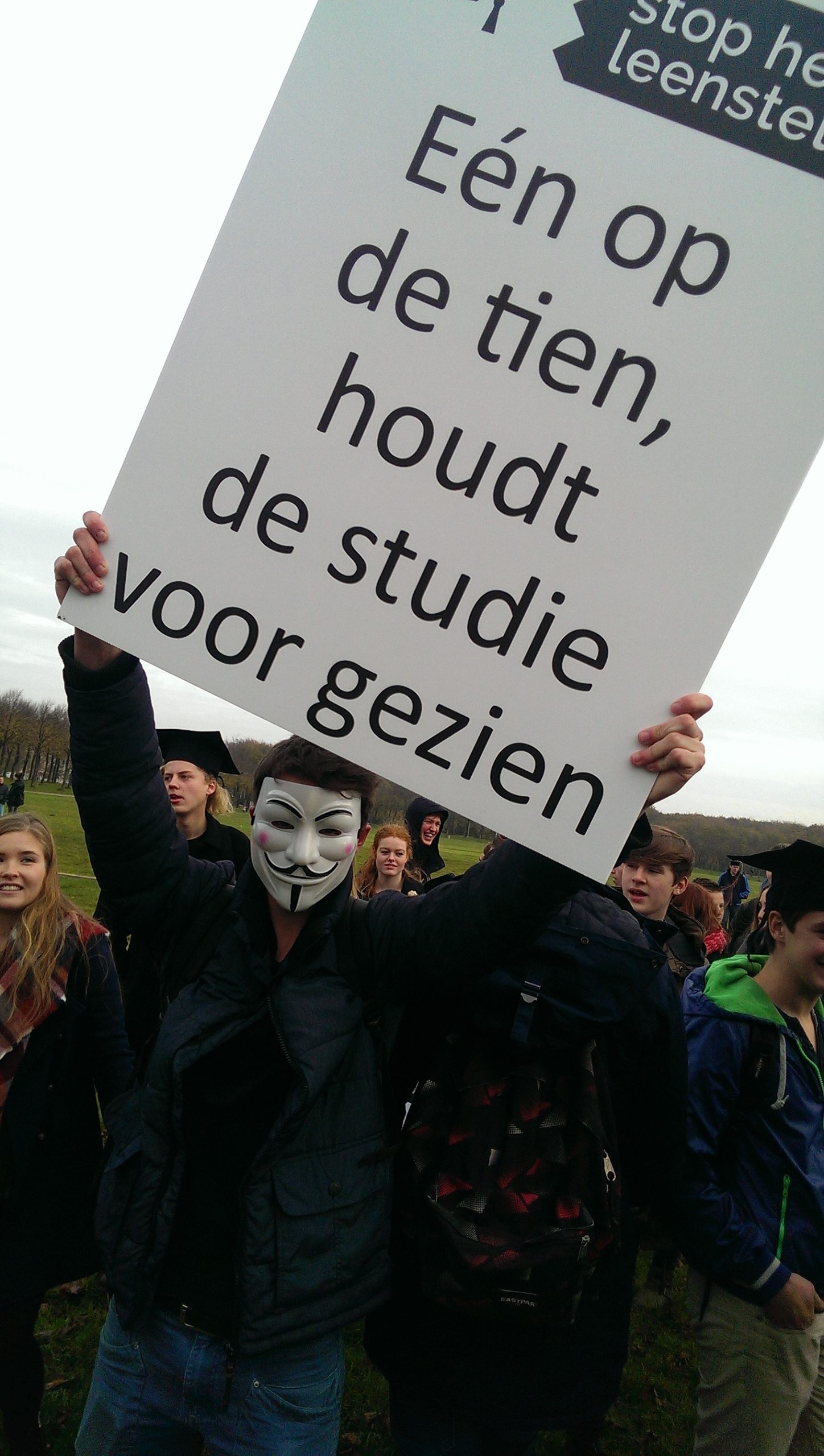 De eerste demonstranten staan al op het Malieveld van Den Haag om te protesteren tegen het afschaffen van de basisbeurs. Het zijn scholieren van het Jan Arentsz College in Alkmaar.