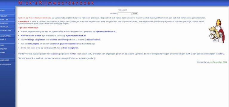 Met pakjesavond in aantocht zijn de vele hulpsinterklazen in rep en roer, want een gedicht schrijven is nog een hele toer. Gelukkig is daar Mick’s Rijmwoordenboek, de digitale hulp voor rijmen en gedichten.