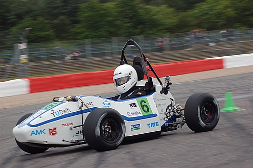 Afgelopen zaterdag tijdens de acceleratietest roken de Delftenaren de overwinning al. Met piepende banden scheurde de vierwielaangedreven elektrische racewagen over het asfalt. Niemand – ook de grote concurrent ETH Zurich niet – kon aan de Delftenaren tippen. Het doel: zo snel mogelijk een afstand van 75 meter afleggen. Het DUT Racing team deed er 3,45 seconden over waarbij het een topsnelheid van 126 kilometer per uur bereikte. Het was de grootste acceleratie ooit op een formula student evenement.