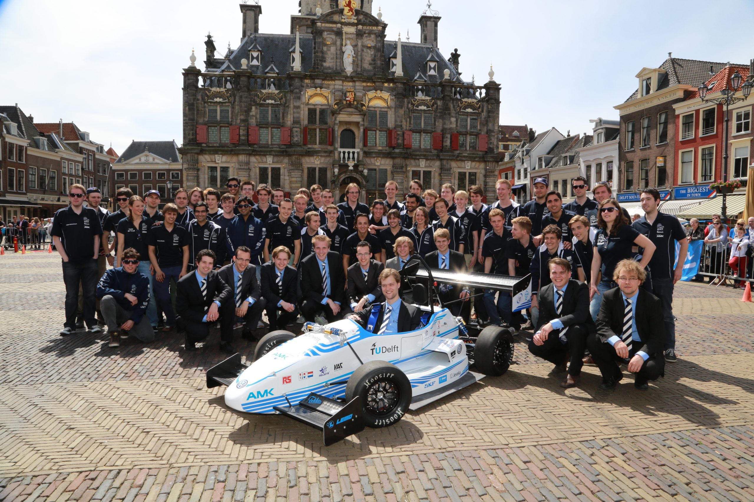 Studenten van het DUT racingteam presenteerden afgelopen vrijdag de nieuwste racer in een lange reeks. De elektrisch aangedreven DUT13 heeft nu spoilers.