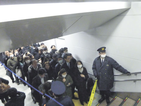 Ik kwam uit bij het station, waar iedereen op schermen zat te kijken naar beelden over ingestorte gebouwen. Er werden kaarten op getoond met locaties waar tsunami’s en branden waren. De treinen en metro’s reden niet meer. Uiteindelijk, ongeveer twee tot drie uur na de aardbeving, besloot ik terug naar huis te gaan en mijn moeder via skype te bellen. Internet deed het gelukkig nog. Die avond was het verkeer een grote chaos. De treinen reden nog steeds niet, terwijl in Tokyo het overgrote deel van de mensen daarvan afhankelijk is. Er stonden enorme files en er liepen veel meer mensen over straat dan gewoonlijk.