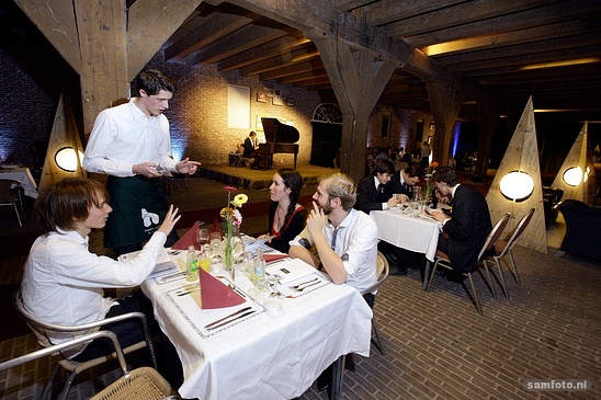 Het was nog even flink aanpoten voor de studenten van vier christelijke studentenverenigingen C.S.R., VGSD, C.S.F.R. en Navigators Delft, want ze konden de leegstaande ruimte voor het tijdelijke restaurant pas begin vorige week betreden en moesten er zelf nog een keuken in zetten. Bovendien mochten ze er niet zomaar klussen, vanwege de monumentale status van het pand aan de Korte Geer 1.