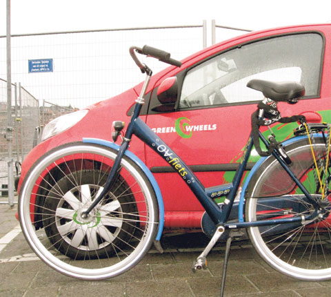In Holland we have two very successful Sharing Wheels projects: one for bikes and one for cars. They both require you to be a member and both have attractive features: picking up the bikes or cars is exceedingly quick and easy; there are quite a few pick-up locations (more so for cars); they’re cheap (well, at least the bicycles), and the ‘wheels’ are well-maintained. The cars need to be returned to the pick-up location; bikes may be returned to other locations, although then the price is steeper, equivalent to a three-day rental. For both the bicycles and the cars you get a discount if you also have a train pass.
