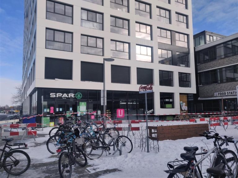 After consultation with TU Delft and the police, the entrance to the building has been partially closed, writes Duwo in an email to its residents. Meanwhile, employees of the housing association are going from door to door to remove the ice from the ledges. (MvdV)