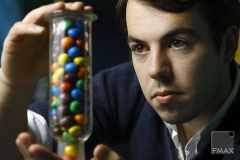 “Natuurlijk zijn er al genoeg rekenmodellen losgelaten op dit soort situaties”, zegt Thijs Papenhuijzen. “Maar tot nu toe hielden die altijd rekening met bolletjes, terwijl sferoïdenstapelingen (een stapeling van bolletjes met een rond vooraanzicht, maar ellipsvormig zijaanzicht – een soort M&M’s) veel vaker voorkomen. Als je nou een uitspraak zou kunnen doen over de karakteristieken van zulke ruimtes, kun je ook berekenen hoeveel energie het kost om een deeltje in die ruimte in te brengen.” Simpel gezegd: een broodkruimel krijg je er met weinig energie wel tussen gepropt, een extra jelly bean niet. Die wetenschap kun je zover terugbrengen, dat de farmaceutische industrie hem zou kunnen gebruiken om te berekenen hoeveel energie het kost om een bepaalde vaste stof op te lossen in een vloeistof. En díe toepassing was er nog niet – terwijl die industrie er volgens Papenhuijzen wel degelijk op zit te wachten.