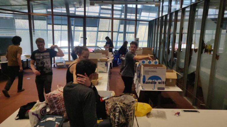 The students hired a van and volunteers drove back and forth to bring the collected goods to the next depot, on Campus The Hague. There, they will be loaded into the Red Cross truck, which will then visit the other participating cities. The plan is that it will then leave for the outskirts of the capital Kyiv.