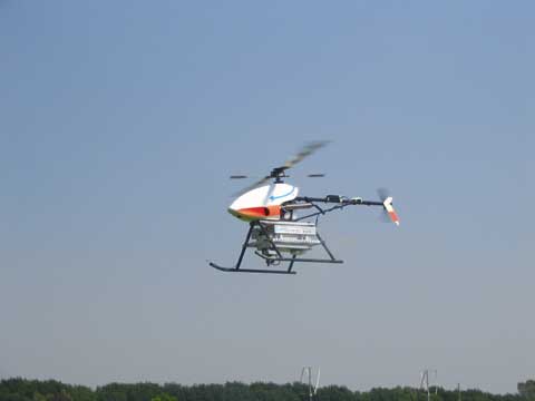 Eindelijk, eindelijk, eindelijk maakte de mede aan de TU ontwikkelde robothelikopter Flycam vorige week een proefvlucht met zijn nieuwe, stabiele besturingssysteem. Nou ja, ‘Flycam’: na het faillissement van de RDM-groep van zakenman Joep van den Nieuwenhuyzen, waaronder ook Flycam viel, maakte het helikopterproject een doorstart onder de naam ‘Delft Dynamics’. Helikopters zijn berucht moeilijk te besturen, maar de wedergeboren Flycam beschikt over stabiliserende software en sensoren. “We kunnen de potentiële klant zo de joystick geven, en zeggen: vliegt u maar”, zegt ir. Arnout de Jong van Delft Dynamics. (Foto: Delft Dynamics)