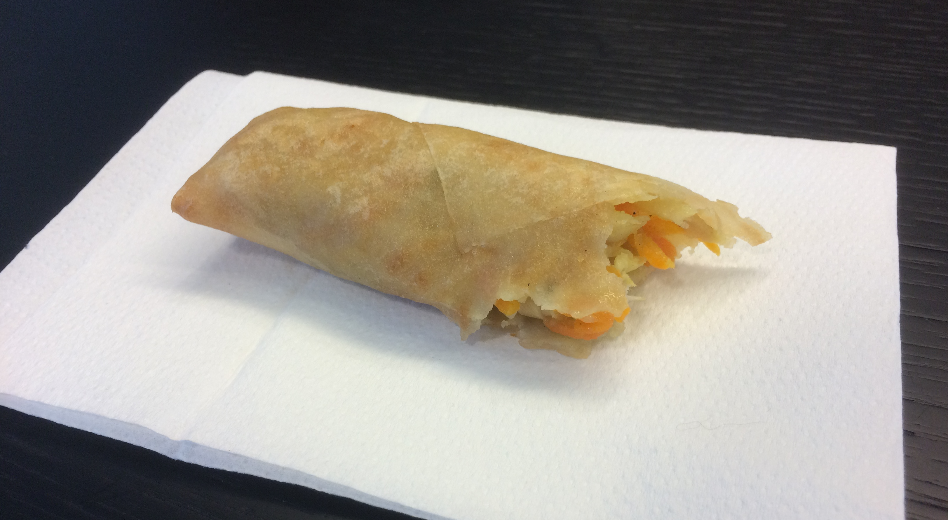 I chose to have the sweet sour chicken with white rice, as the nasi goreng was not available. The accompanying vegetables consisted of a mix of fresh carrot, ginger and kale and tasted very fresh. There is one thing I was less pleased about: If you decide to have a soda with your meal, be aware that you won’t get a whole can but only a small glass. Finally, I would recommend the homemade spring rolls. These are filled with sweet sour chicken and various vegetables and are a nice way to end your meal.