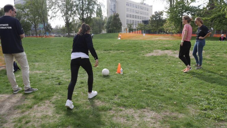 Het Mekelpark is vandaag omgetoverd tot een heus footgolf-terrein met negen holes. Voetbalvereniging Ariston ’80 haalt hiermee geld op voor het goede doel.