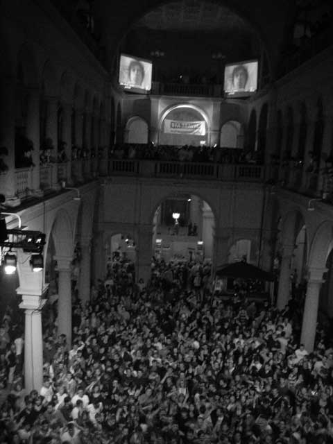 First up, ‘Polyparty’, the biggest student party in Zurich. With 5,000 guests spread over 15 floors in ETH’s huge main building, it’s easy to get lost in the crowd, as I indeed do. I wander the dark corridors, checking out the various concerts, chill-out lounges and bars I stumble across. This year the main floor’s theme is hip-hop – not really my thing. The poetry slam-dunk lounge is interesting. Poet-like looking poets wave their hands and shout confused German verses from the stage into a near empty hall. I boo the Chuck Norris critic and exit, leaving the poets even more confused. The rock floor is livelier, the band not too bad, most of the audience girls in their late teens. Someone happily breaks a window, the chill night air welcome relief, as sweat drips from the ceiling . this old lecture hall was obviously not designed to double as a rock club. With every new beer the party architecture gets more and more elaborate. Fortunately, my house is just five minutes walk away and I call it a night. Could it be that I’m getting too old for this? Nah, its just the sheer size of it that I don’t like.