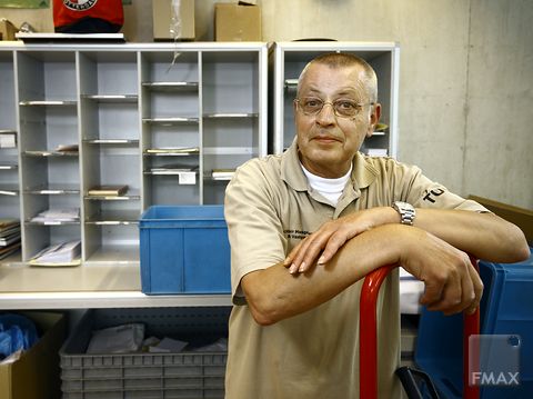 Hij werkt 32 uur in de week, via Combiwerk. Naast het uitzoeken van poststukken en pakketten wijst hij leveranciers de weg, vervangt hij kapotte verlichting, en doet hij allerlei andere klusjes. De hoeveelheid post neemt de laatste tijd af; er gaat steeds meer digitaal.