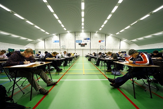 Kos beaamt dat dat niet ideaal is. “Bij 3mE zijn nu grote aantallen studenten. Het is woekeren met ruimte en dan wordt er wel eens een zaal gebruikt die je liever niet wilt gebruiken.” De krapte in tentamenzalen komt tevens doordat aan de Kluyverweg twee grote zalen van elk 250 plaatsen zijn vervallen vanwege nieuwbouw voor Technische Natuurwetenschappen.
