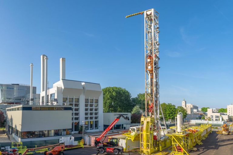 The first work started here six months ago with a smaller installation used to install a supply and discharge of rinse water and a jacket to stabilise the boreholes. Now a larger rig has been installed for the proper job. The drilling of the two boreholes for supply and discharge of hot water from the deep is expected to take six months. In about a year (mid-2024), project leader Dr Phil Vardon (Faculty of Civil Engineering and Geosciences) expects the first hot water at the surface.