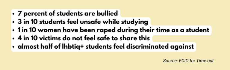 - The Safe Space (in Dutch) theatre performance was organised by the Time Out Foundation and TU Delft students. The play was performed as part of the TU Delft How are U – Week that will run to Friday 18 November.