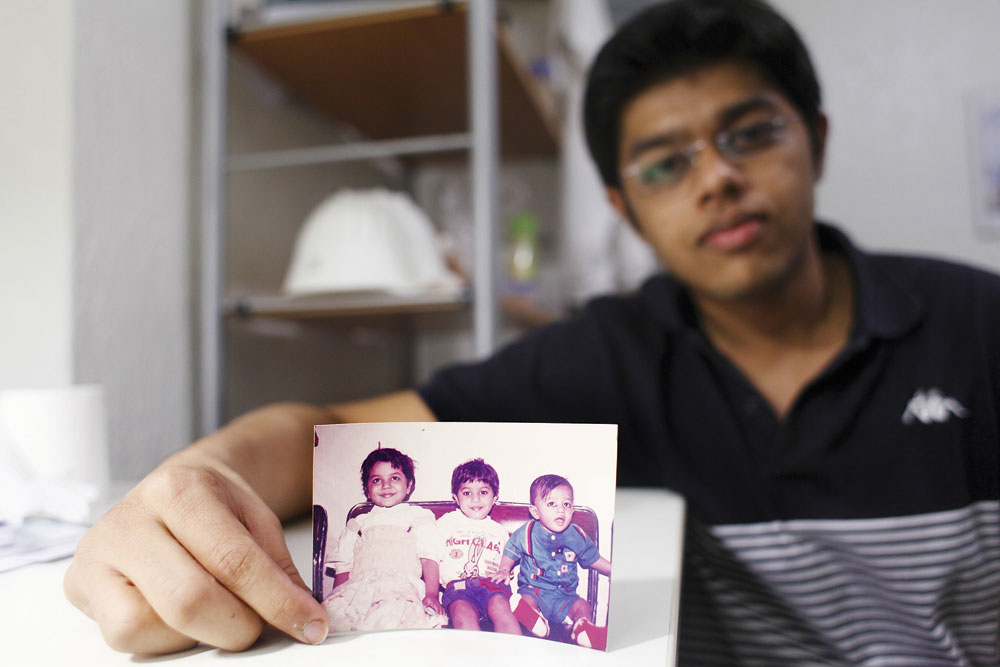 Puneet Kedia (22) uit Mumbay, India is hier sinds augustus 2011 om zijn master sustainable energy technology te halen. Op het prikbord boven zijn bureau prijkt een jeugdfoto van hem met zijn twee oudere zussen.