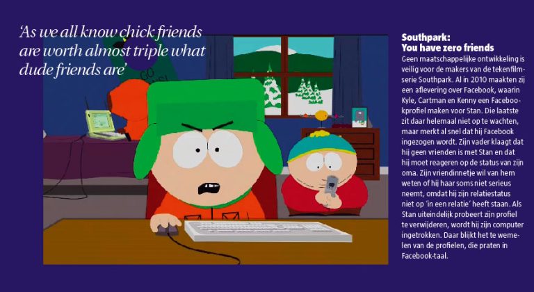 Ook Delftse studenten en verenigingen zijn massaal op het online netwerk te vinden, niet zelden met openbare profielen. Als het even meezit, heeft een student al gauw een paar honderd ‘vrienden’ en wordt hij geregeld getagd in foto’s van leuke feestjes. Zo niet, dan is hij óf zo cool dat hij Facebook niet nodig heeft óf hij is een rare snuiter zonder vrienden. “Als je een leuk meisje hebt ontmoet en ze staat niet op Facebook, dan denk je gauw: dan zal ze toch wel niet zo leuk zijn.” (zie kader Southpark)