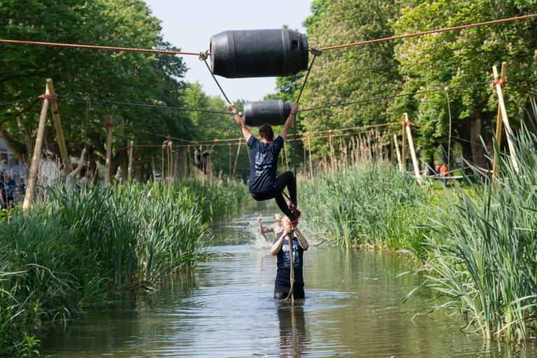 Door de modder rennen, over netten boven de sloot klauteren en als een aap tussen touwen slingeren. Afgelopen zondag kon iedereen zich weer uitleven in de Survival Strijd.