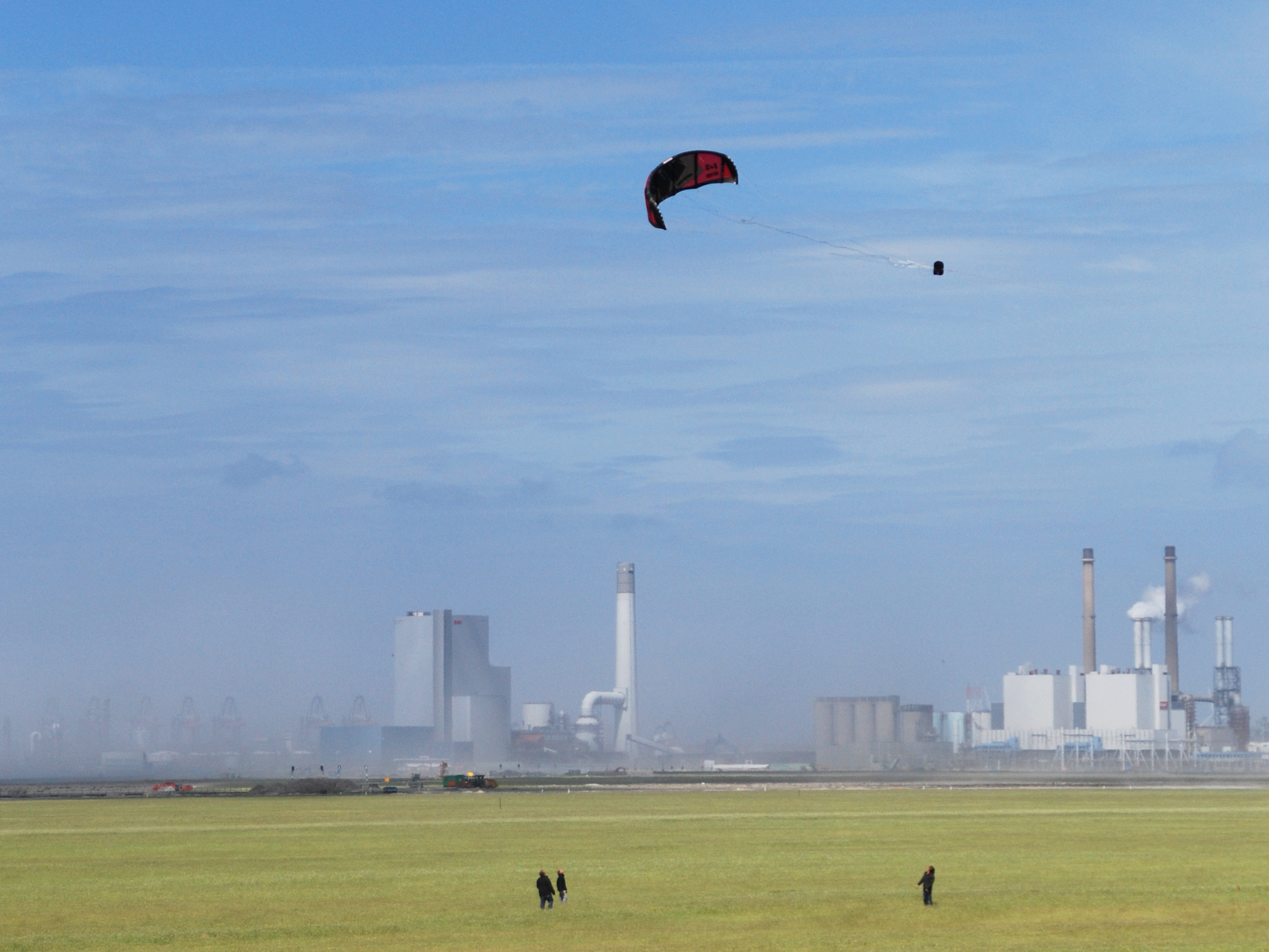 De onderzoekers van Asset testten afgelopen weekend hun elektriciteit opwekkende vlieger op de Tweede Maasvlakte.