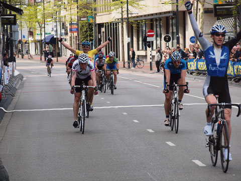 “Bij de eerste etappe stond er weinig wind”, verhaalt de Delftse student. “Daardoor bleef de hele groep tot aan de eindsprint bij elkaar. Ik zou eigenlijk de sprint aantrekken voor ploeggenoot Jos Koop, maar die zat op een gegeven moment niet meer in mijn wiel. Toen ben ik zelf gaan aanvallen, vlak voor de finish.” Het leverde hem een tweede plaats op, achter de Belg Szekely. “Szekely kwam mij achterna. Hij was veel sterker dan ik, won met overmacht.”