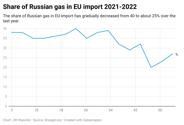 Europe has obtained about 40% of its natural gas from Russia for decades. Over the last half year this figure has decreased to about 25%, notes Energy Analyst Prof. Kornelis Blok (Faculty of Technology, Policy and Management, TPM) from figures published by Bruegel, the European economic thinktank. A couple of weeks ago, of the 90 terawatt hours of imported natural gas, only 18 came from the Russian Gazprom. This is not 40%, but 20%. How did this come about?
