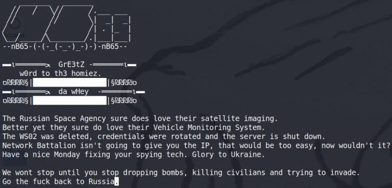 Hackers group Network Battalion 65 annoinces the take-over of a Russian satellite system.
