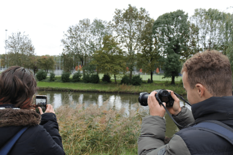It is a rather dreary overcast day when Delta joins a guided bird-spotting tour of the Hammenpoort, led by groundskeeper René Hoonhout, eco-policy developer Tim Tabak and nature expert Gerard Kuit. Three groups of undeterred Dutch and international students have shown up. While walking through the wooded area they are surrounded by the sounds of chirping coming out of the trees.