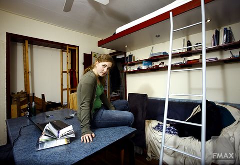 Maria de Jong studeert sinds dit jaar maritieme techniek en woont op de Delftsestraatweg in Delfgauw. Dit huis is sinds een jaar of vijftien een VGSD-kast en op dit moment wonen er twee heren en twee dames. De Jong is twee à drie maal in de week bij de VGSD te vinden, de ouderejaars gaan minder vaak. Haar kamer is nog niet echt ingericht in het afgelopen half jaar. De houten vloer is gelegd maar moet nog worden gelakt, en dan moeten de meubels toch weer naar buiten. Vooral de heren in het huis zien erop toe dat de HJ-taken worden uitgevoerd. De opvallendste taak is het opruimen van dode dieren: in het begin van de winter vingen de bewoners binnen een week zeven muizen, nu ligt er op het balkon een dode duif te wachten tot hij in de vaart wordt gegooid.