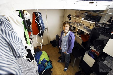 Hij is dit jaar begonnen met werktuigbouwkunde, maar hij is alweer gestopt. In september gaat hij IO doen en de rest van het jaar is hij aan het parachutespringen, sportklimmen en een beetje werken. In dit huis ben je sowieso een jaar HJ, ook als er halverwege het jaar nog een huisgenoot bijkomt. Op dit moment zijn er twee HJ’s. Samen moeten ze het glas en oud papier wegbrengen en zorgen voor de vuilnis. Ook moeten ze zorgen dat er altijd voldoende eieren in huis zijn, en dat is nog niet eenvoudig: eieren blijven drie weken goed, maar het verbruik varieert nogal.