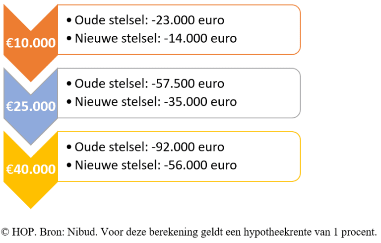 Bij een studielening van tienduizend euro levert deze nieuwe regeling woningzoekers zo’n drieduizend euro aan extra hypotheekruimte op. Wie 25 duizend euro in het rood staat bij DUO, kan volgend jaar tussen de zeven- en achtduizend euro meer lenen voor de aankoop van een huis.