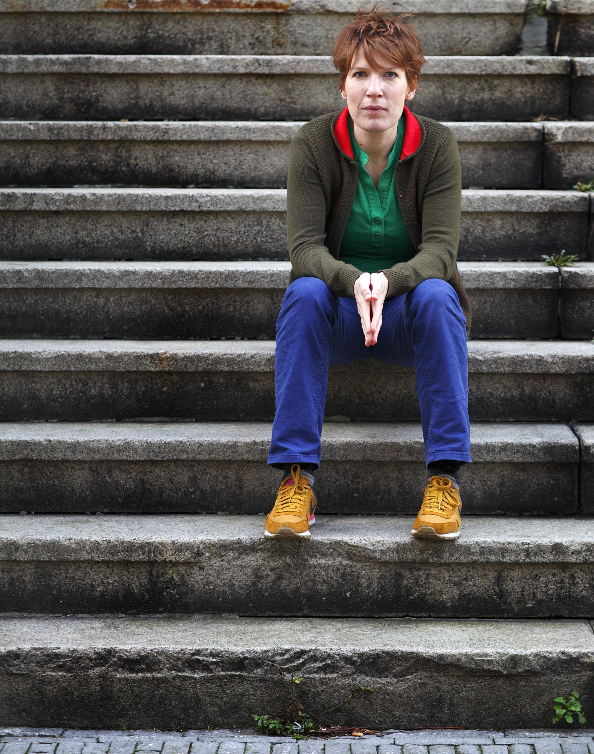 “Er zit genoeg nuance in mijn boeken. Taal is een kwetsbaar iets. Ik merk dat mensen zich soms onzeker voelen bij mij. Ze worden zich bewust van hoe ze praten. Dat probeer ik te debunken. Ik zeg zelf allerlei dingen die taaltechnisch niet kloppen. Ik maak zinnen niet af, gebruik lelijke woorden. Ik heb alleen niet die fundamentele onzekerheid over mijn taal. Ik snap wel hoe die moet voelen. Cécile Narinx besprak in december in de Volkskrant mijn kleding. Dat ik kleren draag die lekker zitten, dat ik wel eens een legging aan heb, wat écht niet kan. Ik val op felle kleuren, maar verder doe ik maar wat. Dat slonzige hoort een beetje bij mij. Maar toen ik het artikel las, betrapte ik me erop dat ik ervan onder de indruk was, dat ik me wilde verdedigen. Ik wilde zeggen: ‘maar het kan me niks schelen en ik houd niet van winkelen’. Die reactie is denk ik vergelijkbaar met hoe mensen zich voelen als ik iets over hun taalgebruik zeg.”