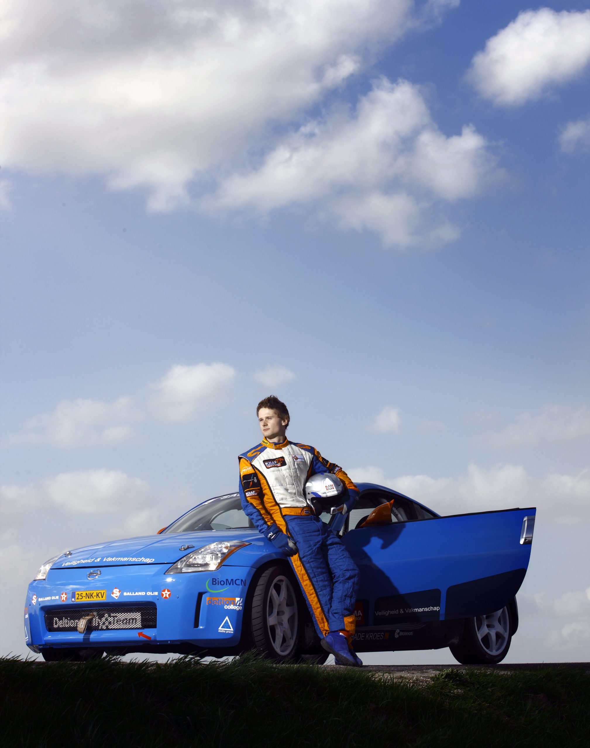 “Ik heb twaalf concurrenten die al rijden in de Nissan 350Z. Dus ja, dat wordt spannend. Of ik wedstrijd kan gaan rijden op internationaal niveau hangt overigens niet alleen af van mijn snelheid, maar ook van mijn uitstraling.”