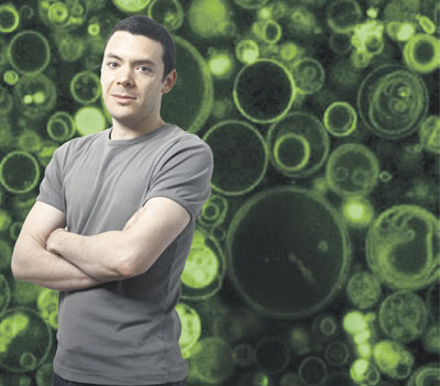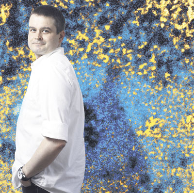Het specialisme van dr. David Grünwald: “De afbeelding van moleculen binnen de kern van een levende cel.” Moleculen zien met een optische microscoop? Daar zijn ze toch te klein voor? Binnen een levende cel, dus je ziet allerlei levensprocessen live gebeuren? Het blijkt te kunnen. Grünwald heeft zo vastgesteld dat het tweehonderd milliseconden duurt voordat een RNA-molecuul zich door de kernwand naar buiten heeft gewurmd en dat een gemiddeld eiwit in vijf tot tien milliseconden naar binnen is. “Het mooist was te zien hoe een RNA-molecuul de ene na de andere kernporie probeerde. Dan bleef het ergens een seconde hangen en ging weer verder. Totdat het bij een porie kwam die het doorliet.”