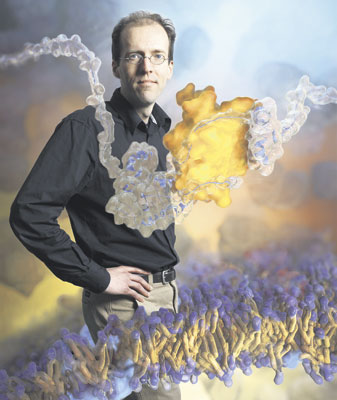 Dr. Christophe Danelon is na eerdere betrekkingen aan de universiteiten van Toulouse en Lausanne in Delft neergestreken. Hij vindt het opwindend om deel uit te maken van zo’n nieuwe afdeling waar mensen een reputatie hebben op het gebied van de fysica van biologische moleculen en waar expertise aanwezig is over microscopie en spectroscopie. De meeste publicaties van Danelon uit de afgelopen jaren gaan over ionenkanalen. “Dat zijn eiwitten op membranen van levende cellen”, legt hij uit. “Ze zijn van groot belang voor het regelen van ionenstromen, het binnenlaten van voedsel en het uitscheiden van afvalproducten.” In Delft, neemt het onderzoek ‘een kleine wending’.