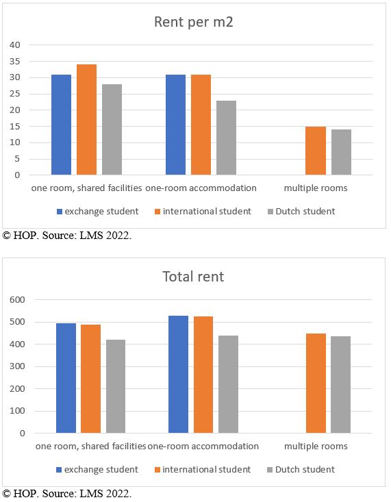 The union refers to the National Student Housing Monitor, published in September by knowledge centre Kences. The data collected by Kences confirms (in Dutch) that international students pay more rent per square metre than Dutch students. Rents for foreign students are also higher overall: they spend between 70 and 85 euros more for a one-room accommodation.