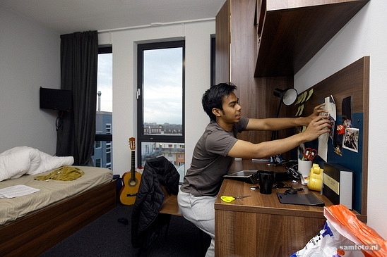 However, given the major shortage of student housing in Delft, the International Office has enlisted the help of the newly opened Student Hotel The Hague to provide housing accommodations to some 70 TU Delft international students. “Last summer, we experienced a huge shortage of accommodations, something we were not able to solve within Delft, so we had to look elsewhere,” van der Wel said. “What I like about The Student Hotel’s concept is that it offers short-stay accommodations but with hotel facilities. Of course, that is also reflected in the price.”