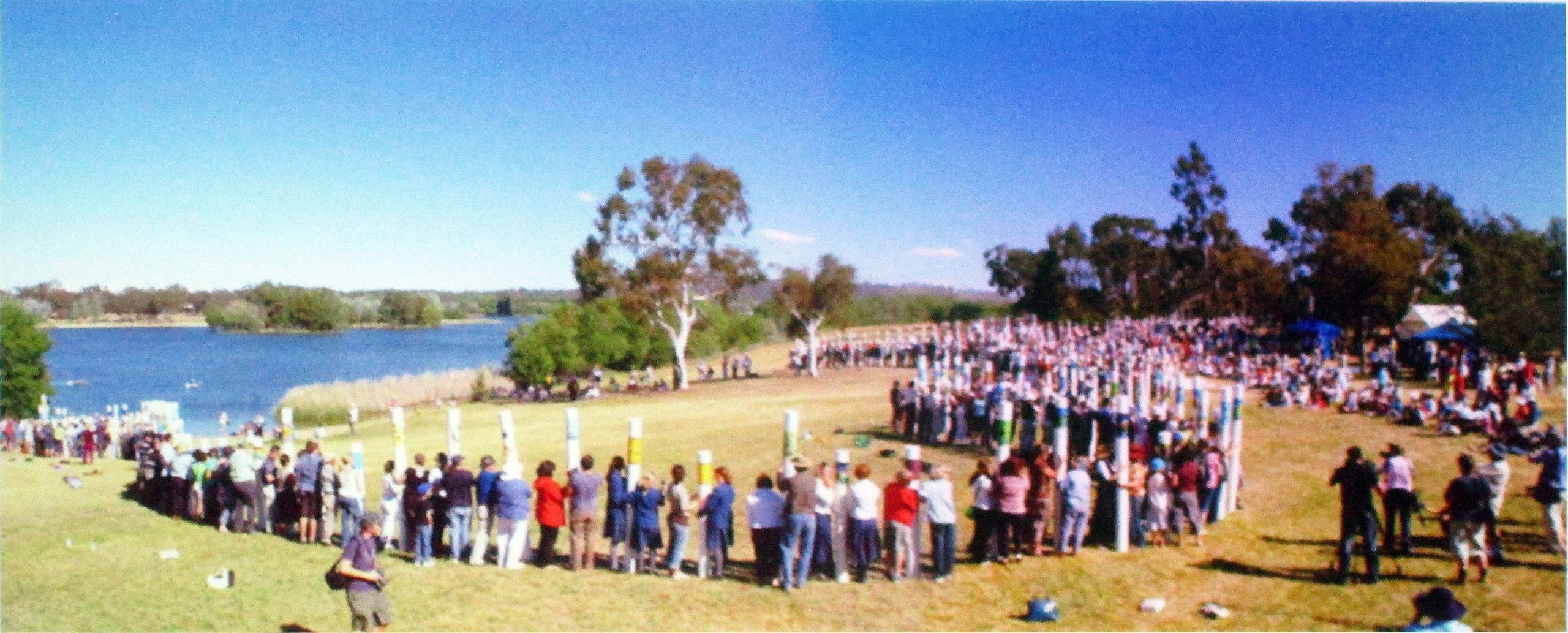 Ware presented two memorial projects for catastrophic events where trauma and raw emotions were still present in the communities. The SIEV X memorial (suspect illegal entry vehicle 10) at Weston Park, Canberra, marked the sinking of a fishing boat full of refugees trying to reach Australia in October 2001 resulting in 353 deaths, mostly women and children. The winning concept of a student competition, its decorated poles represent the lives lost. Only given permission to erect for one day and then later six weeks, Ware described the struggle to get recognition for the plight of refugees and a permanent permit on the politically charged site near the seat of government.