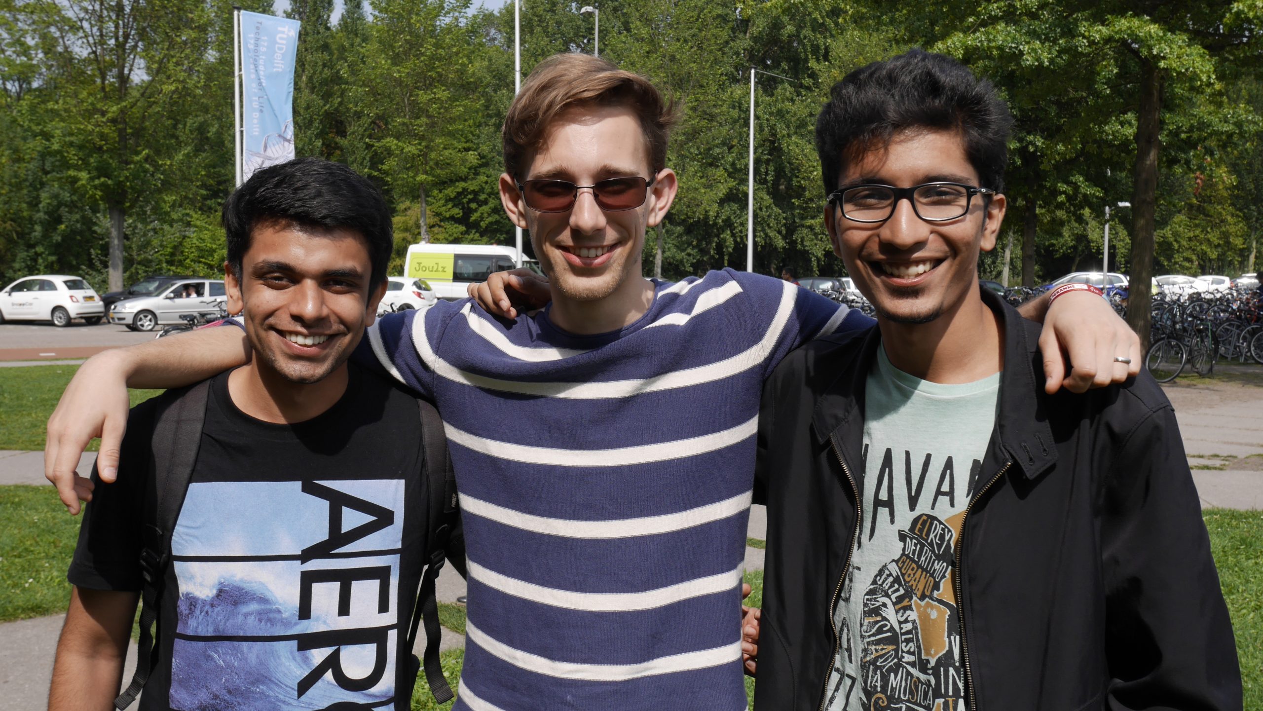 Varun, Volker and Yash meet the Dutch culture. “I love the stroopwafels.”Another Indian that did not go to the States is Varun. “I looked up the student life in Delft and I liked the stories. People here are very relaxed and welcoming, they speak good English and have a good sense of humour.” It surprised him that during the sunny weekend, people went out on to the streets. “Normally in a big Indian city, people will stay inside their houses. Here people went outside to enjoy the weather and the Jazz Festival that was happening. I like that.”