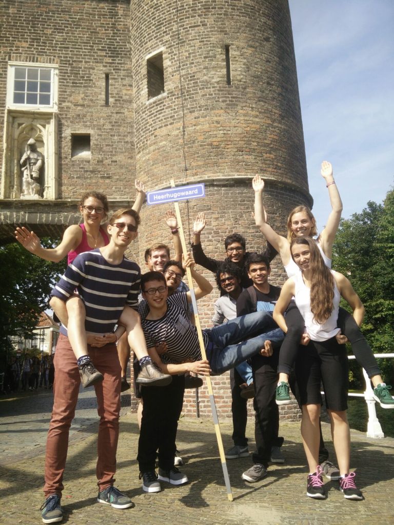Group Heerhugowaard.‘Heerhugowaard’ says the sign of the group of Volker, Yash and Varun. “It’s a city in the northwest of the Netherlands,” explains Yash, who is going to study Building Engineering for two years. He comes from India. “In India, the trend is to study in the USA. A lot of people go there. I prefer the multicultural atmosphere of Delft. If I would have gone to the States, I would have met Indian, Chinese and American students. Now I meet people from all over the world. Yesterday, for example, I met an Albanian! I never thought I would meet someone from there.”