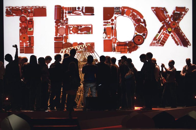 Een feestje. Zo luidde het oordeel over de eerste TEDxDelft op 7 november in de aula. Het hardste applaus was voor kunstenaar Theo Jansen die sprak over strandbeesten die hij maakt van elektriciteitsbuizen. (Foto: Sam Rentmeester/FMAX)