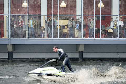 Onder het thema ‘Ruimschoots’ gaf maritieme studievereniging William Froude maandag met een jetskidemonstratie de aftrap voor de viering van het 21ste lustrum.