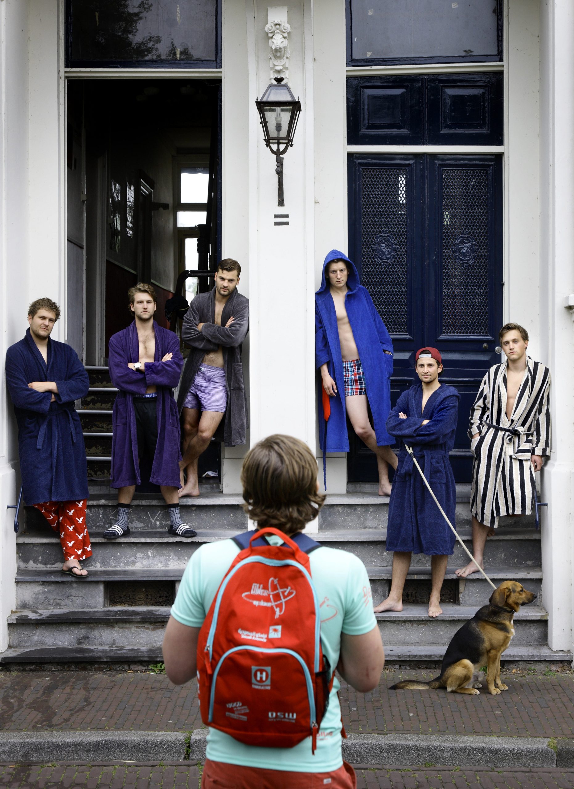 Dinsdag 17 juni om twee uur ‘s middags voert de rondleiding via de grootste en de kleinste kamer (“Op zes vierkante meter past alles wat je nodig hebt”), langs een deur met het opschrift ‘Na deze deur, geen gezeur’ naar het met rubberen tegels beklede dakterras. De zon schijnt, er staat een opblaasbadje met een klein laagje water en de studenten- in-spé ploffen neer op de vele plastic stoeltjes. Wie bier wil, krijgt wat te drinken. De rest heeft even pech. Een bewoner gooit zijn mok op de grond om het nut van een rubberen vloer te tonen. Twee jongens lachen instemmend.