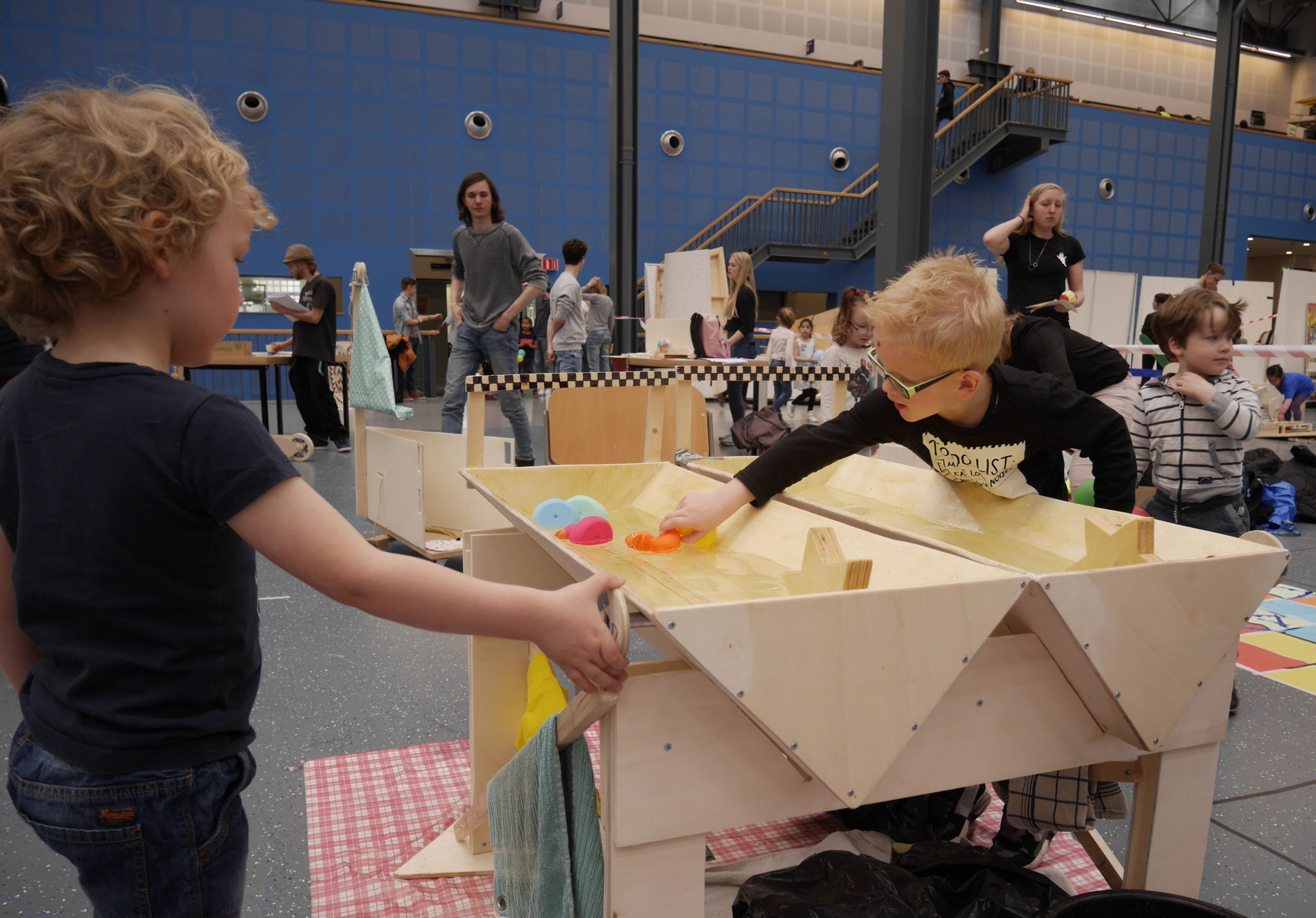 Een spannende ochtend vandaag voor 250 eerstejaars studenten industrieel ontwerpen. Voor het eerst in hun loopbaan staan ze oog in oog met de kritische gebruikers van hun producten. Kleuters in dit geval.