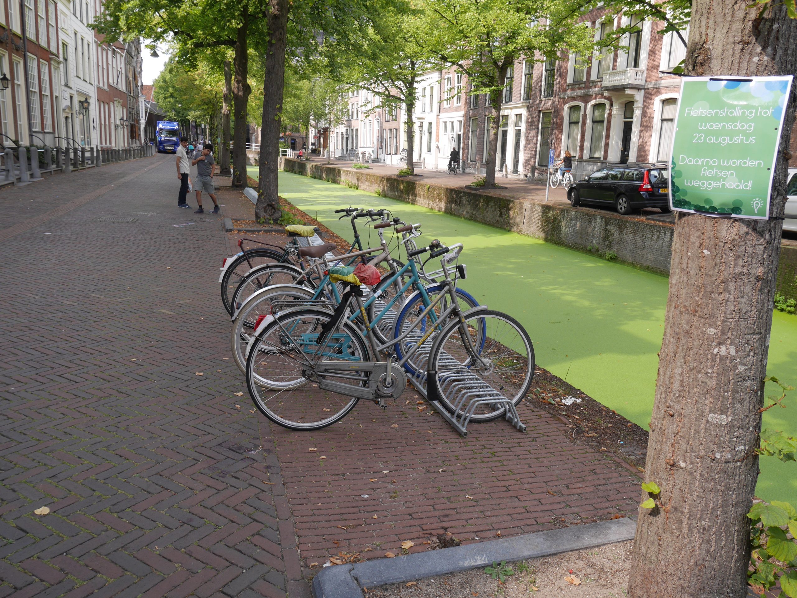 Hoe dan ook, er zijn extra fietsenstallingen. “En wij hebben ons uiterste best gedaan om studenten te informeren dat ze lopend moeten komen, of hun fiets in de fietsenstallingen te zetten.” De stallingen op de Burgwal leken op maandag tijdens de informatiemarkt redelijk te worden gebruikt, hoewel veel fietsen ook dichterbij de Markt stonden. De rekken op de Oude Delft zijn (nog) niet in gebruik, maar ja… hier kun je je fiets ook niet echt lekker aan vastzetten.