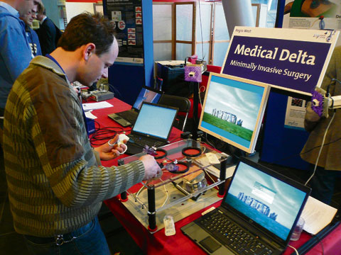 Interessante lezingen, goede koffie, lekkere broodjes en een foyer vol met onderhoudende demonstratieopstellingen en posters. Is dat genoeg om de kloof tussen de medische en technische cultuur te overbruggen? Volgens Frans van der Helm helpt het allemaal wel. “Het kost een jaar voordat je een beetje on speaking terms bent en voordat je elkaar begrijpt. Soms betekent een woord zelfs twee verschillende dingen voor een arts of een ingenieur. Stabiel betekent voor een technicus, dat iets terugkeert naar de uitgangspositie. Voor een medicus heet iets stabiel als het vastzit. Dat is een heel verschil.”