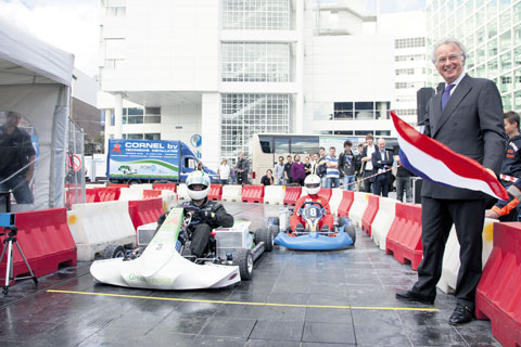 bijzondere kartrace: waterstofkart versus benzineslurper. De race telde